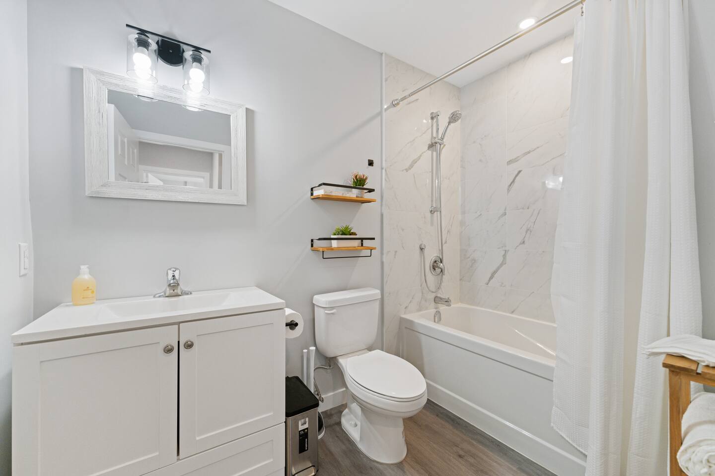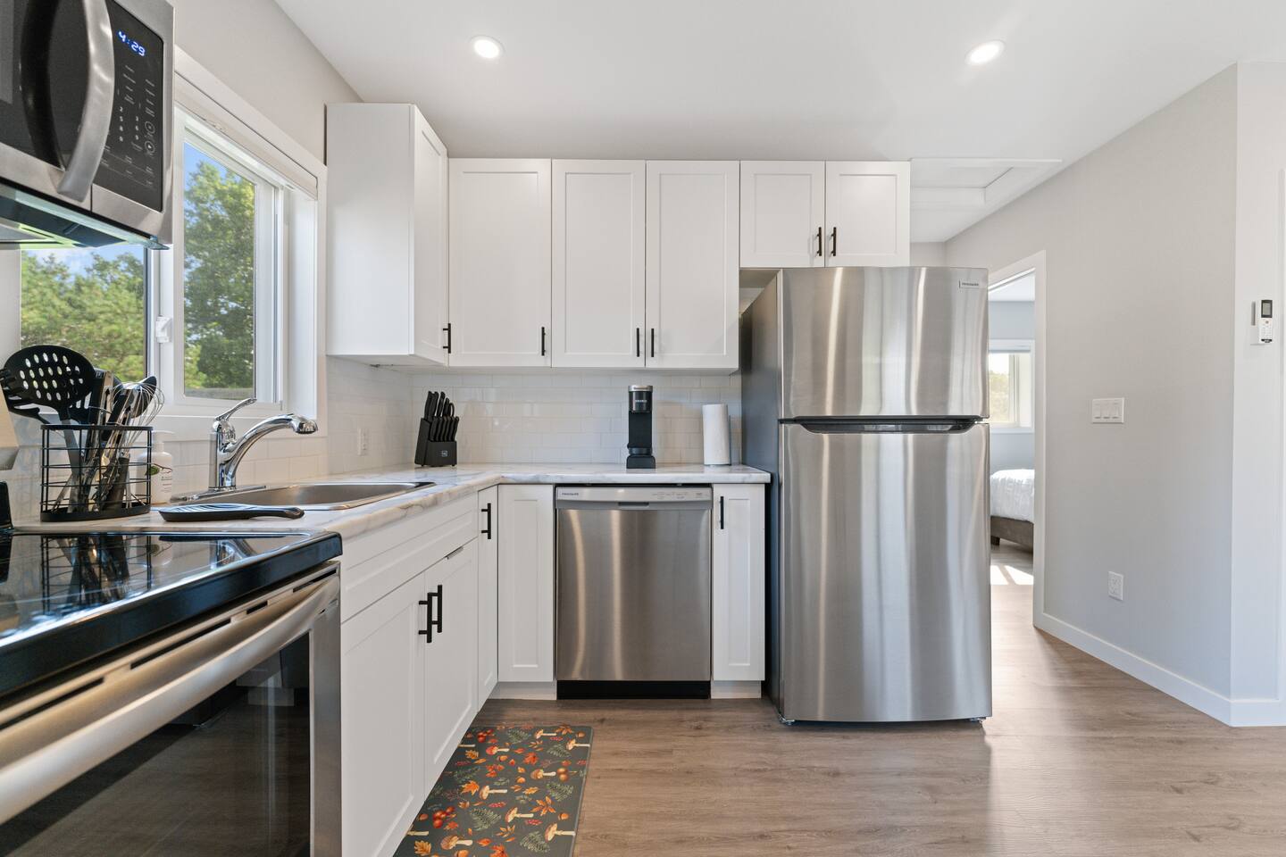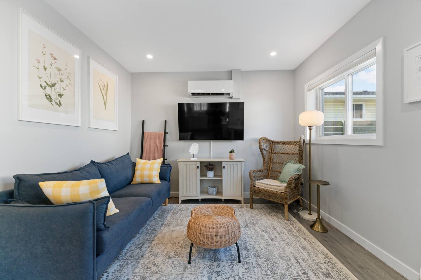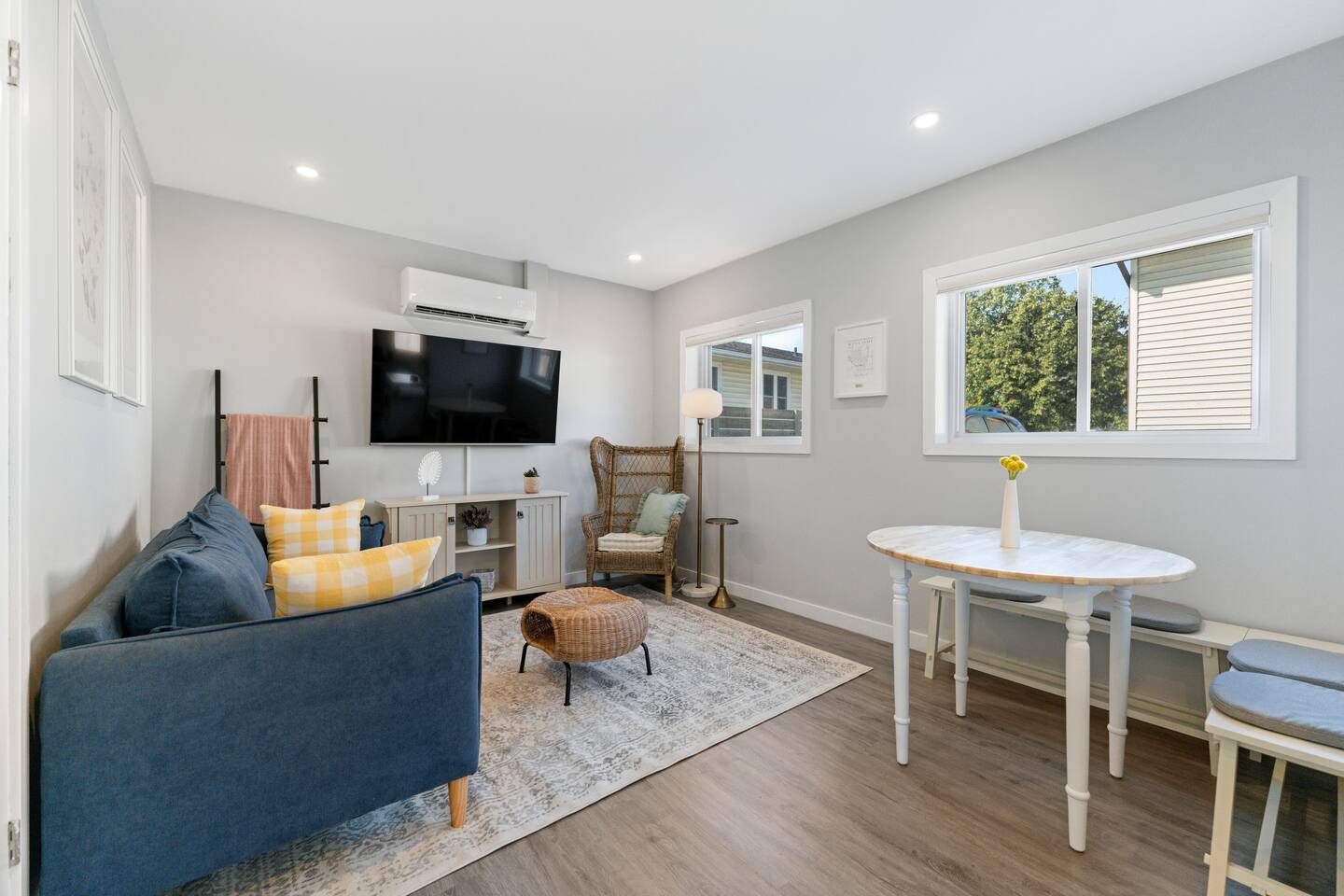 Now, let's talk about the various spaces within the guesthouse: ✔ Fully independent and private garden suite ✔ 1 Bedroom: This cozy bedroom provides a peaceful retreat for a restful night's sleep ✔ 1 Living and Dining Room: Open concept (living, dining and kitchen) ✔ 1 Full Kitchen: Our fully equipped kitchen offers everything you need to prepare your favorite meals ✔ 1 Backyard: Enjoy the ambiance of the adjacent public park ✔ Individual heating and air-condition